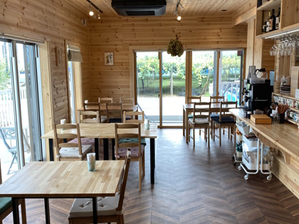 自家農園に囲まれており、新鮮フルーツを使ったシャインマスカットパフェ、ももパフェ