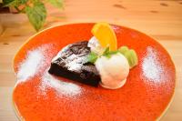 自家製のトマトソースと焼いたチーズがベストマッチ!!! 黄金比のハンバーグ。ジューシーで柔らかいですよ! ※付け合わせの野菜は仕入れで変わります。